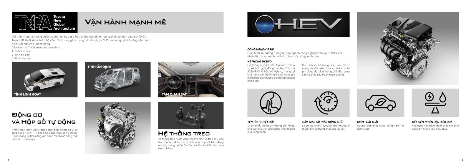 Hệ thống Hybrid trên Alphard HEV là sự kết hợp giữa động cơ xăng 2.5L mã A25A-FXS và hộp số Hybrid, mang lại khả năng vận hành yên tĩnh, tăng tốc hứng khởi, giảm lượng khí thải và tiết kiệm nhiên liệu.